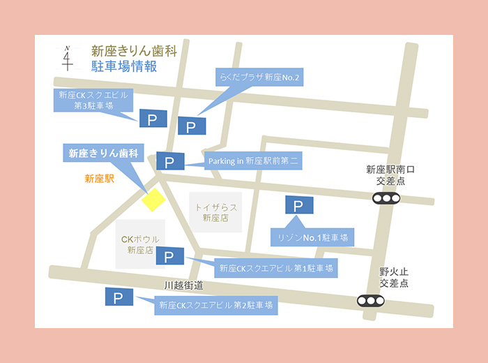 医院の付近にいくつか提携駐車場がございます。診察の際に駐車券もお持ちください。